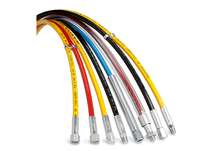 適用: 1. 一般的な工業用および移動用水力装置およびガス用における高圧サービス 2. ジャックシステムの柔軟な操作を促進する 3.ポリアミドコアチューブ4により,様々な液体に使用できます.労働圧 46.5 MPa (6.740 psi) から 70 MPa (10153 psi) まで