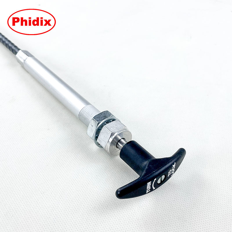 のPhidixツイストロックプッシュプルコントロールケーブルシリーズは、制御位置の確実な機械的ロックを必要とする用途向けに設計されています。Tハンドルの簡単な1/4回転ツイストにより、ケーブルは所定の位置にロックされ、高振動環境下でもその位置を維持します。